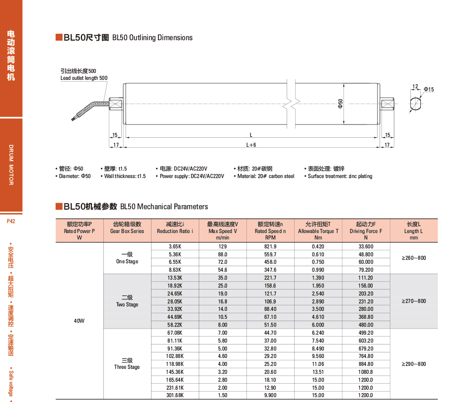 BL50 DC電動ドラムモーター