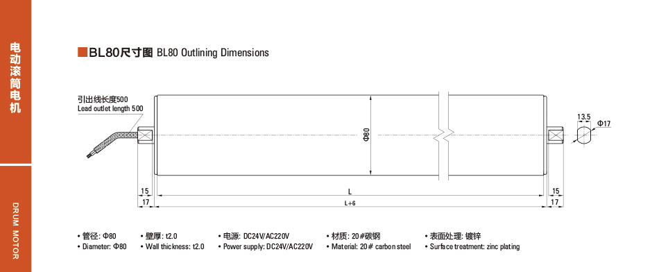 BL80 DC電動ドラムモーター