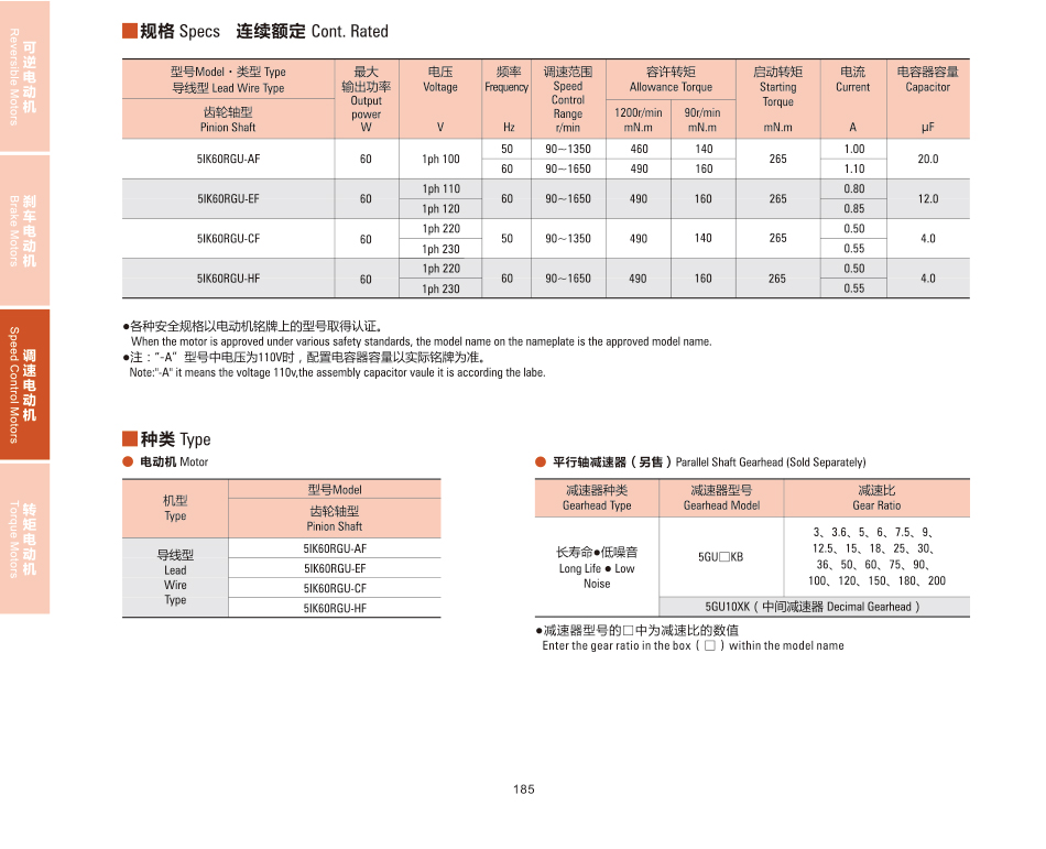小型ACギアモータ