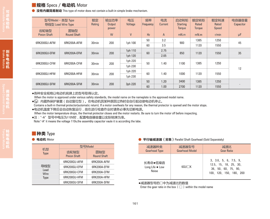 200w固定速度ブレーキ小型ACギヤモータ