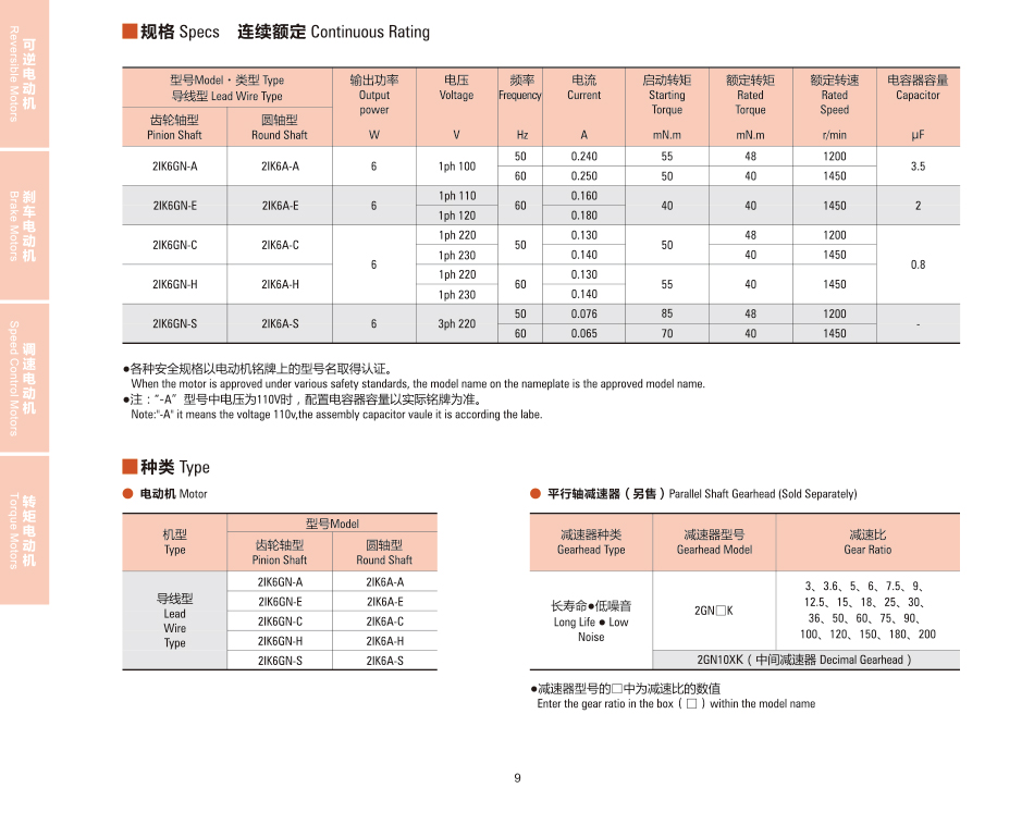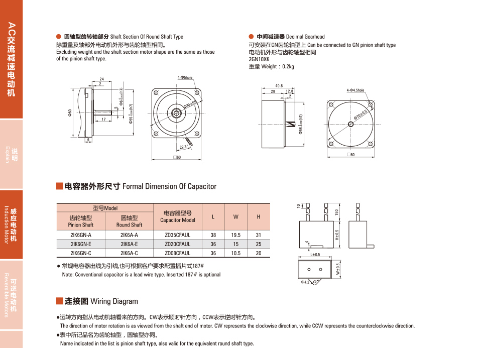 2IK6GN-C小型AC誘導固定速度モータ