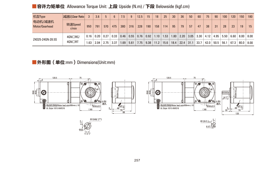 Z6D250-24GN DCブラシ直角モータ